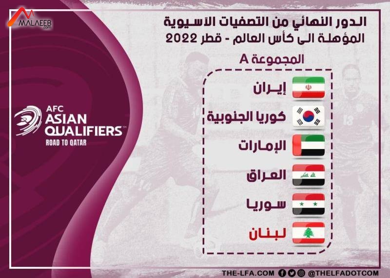 اعلن الاتحاد الآسيوي لكرة القدم برنامج مباريات الدور النهائي من التصفيات الآسيوية المؤهلة إلى نهائيات كأس العالم في قطر العام 2022 والتي يخوض لبنان مباريات المجموعة الاولى فيها إلى جانب منتخبات كوريا الجنوبية وايران والإمارات والعراق وسوريا.