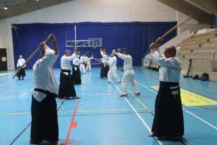 شملت الدروس فن استعمال الاسلحة المتبعة في لعبة الايكيدو وهي السيف الخشبيKen  والعصا الخشبية jo