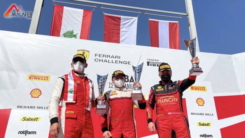 حنا على منصة التتويج في سباقات "فيراري تشالنج"
