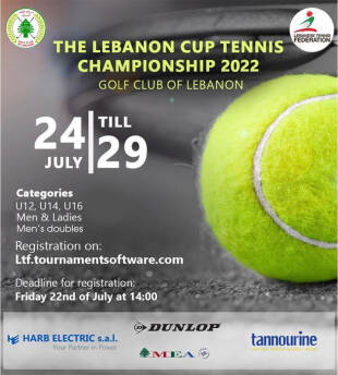 ينظم نادي الغولف مسابقة كأس لبنان في التنس للعام 2022 على ملاعبه بين 25 و29 تموز الجاري تحت اشراف الاتحاد اللبناني للعبة.