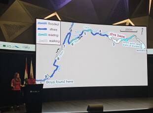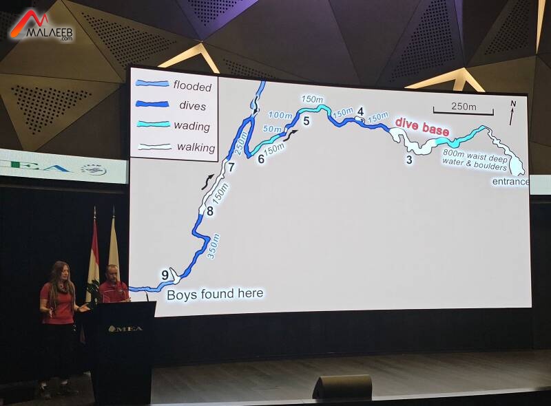أقيمت الندوة في مركز التدريب والمؤتمرات في شركة طيران الشرق الاوسط بحضور حشد من ممثلي الاتحادات الرياضية والاندية والمهتمين وأصحاب الخبرة في هذا المجال، وتم خلالها عرض شرح مصور لما حصل في كواليس المهمة، قدمه ممثلا الهيئة البريطانية لعمليات الإنقاذ في المغاور ايما بورتر ومايك كلايتون، وتحدثوا فيها عن التحديات التي واجهوها خلال المهمة التي دامت 18 يوما استطاعوا من خلالها انقاذ جميع العالقين وعددهم 13 مراهقاً.