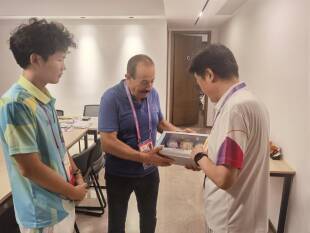 من جهته المحامي سعادة شكر عمدة هانغزو على مبادرته منوهاً بالصورة الجميلة التي ظهرت عليها مدينة هانغزو في هذه الدورة التاريخية مشيداً بروعة الجوانب التنظيمية وبإسلوب إحترافي أبهر كل العالم وقدّم له هدية تذكارية مجسم عن العلم اللبناني .