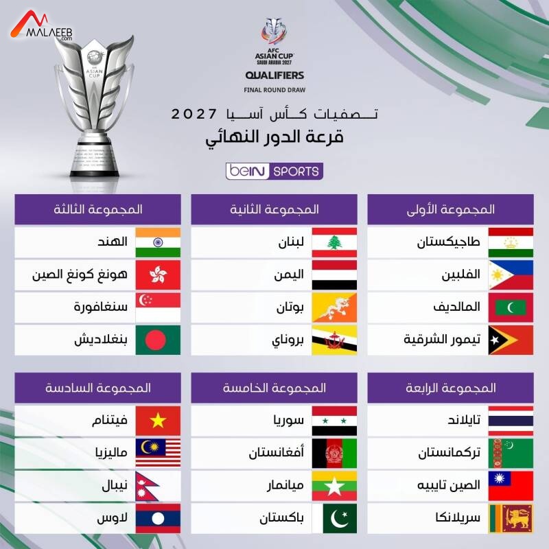 اوقعت قرعة الدور النهائي للتصفيات المؤهلة الى نهائيات كأس أمم آسيا في كرة القدم التي تستضيفها السعودية في العام 2027، والتي سحبت في مقرّ الاتحاد الآسيوي في العاصمة الماليزية كوالامبور، منتخب لبنان ضمن المجموعة الثانية الى جانب منتخبات اليمن وبوتان وبروناي دار السلام.