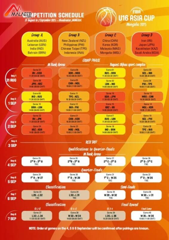 برنامج مباريات منتخب لبنان في سلة آسيا تحت 16 سنة