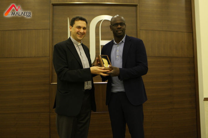للمناسبة، وخلال الحفل، ألقى الأب الرئيس جرمانوس كلمة رّحب فيها بالضيف وشكر له حضوره الى لبنان رغم الأجواء السياسية والأمنية الملّبدة وقدّم له الريشة الذهبيّة للجامعة  تحمل رقم 15/25 مرفقة بهدية تذكارية. بعدها ألقى اللاعب الفرنسي كلمة عفوية شكر خلالها الجامعة الأنطونيّة على الترحيب الحار الذّي أحاطته به.