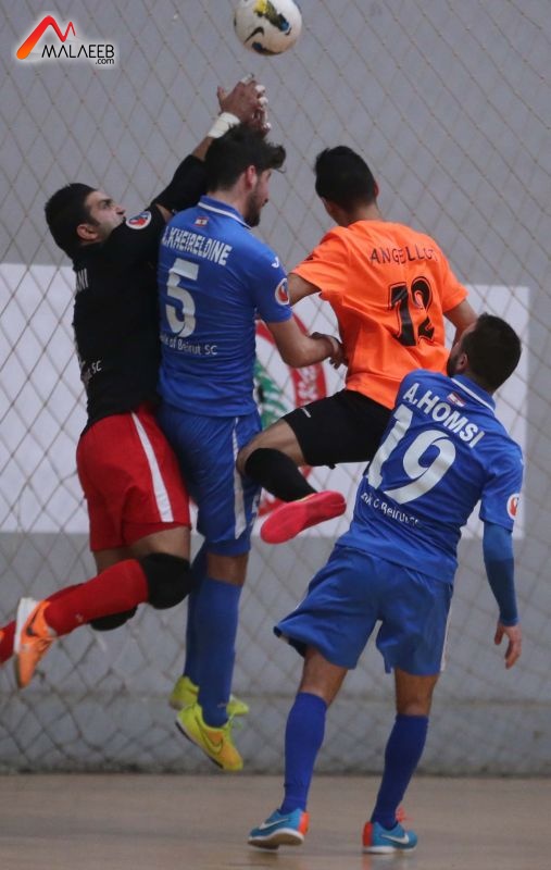 wwww.malaeeb.com - سيُحسم لقب بطل الدوري اللبناني لكرة القدم للصالات عندما يلتقي بنك بيروت وضيفه الميادين في مباراة خامسة حاسمة ضمن سلسلة الدور النهائي، وذلك بعد عودة الاول من ملعب السد المعتمد ارضاً للثاني بفوزٍ ثمين 4-2 (الشوط الاول 1-0 للفائز) في رابعة مبارياتهما التي اقيمت امام مدرجات ممتلئة.