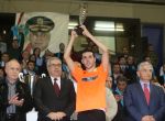 وذهبت الجائزة في نسختها الاولى الى كابتن منتخب لبنان وفريق الميادين قاسم قوصان بعدما حصد 183 نقطة، مستفيداً من حصوله على نقاط المركز الاول من قبل سبعة مصوّتين. وتسلّم قوصان جائزته من الوزير حناوي، وهو تقدّم بفارق 8 نقاط على زميله في المنتخب ولاعب بنك بيروت احمد خير الدين (175 نقطة)، بينما جاء حسن زيتون من الميادين ثالثاً (147 نقطة)، بفارق نقطة واحدة عن لاعب بنك بيروت علي طنيش "سيسي" (146 نقطة). وحلّ لاعب طرابلس الفيحاء مروان زورا خامساً (118 نقطة)، تلاه محمد ابو زيد من الجيش اللبناني في المركز السادس (105 نقاط)، ثم محمد قبيسي من الجيش ايضاً في المركز السابع (103 نقاط)، بينما جاء ثامناً ادمون شحادة من طرابلس (87 نقطة).
