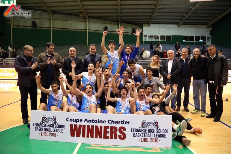 www.malaeeb.com - احتفظت مدرسة الشانفيل - ديك المحدي بلقب بطولة المدارس السنوية السادسة في كرة السلة للعام 2015، على كأس الراحل انطوان شارتييه، التي نظمتها "سبور ايفازيون" بالتعاون مع المدرب رزق الله زلعوم تحت اشراف الاتحاد اللبناني للعبة برعاية "بزورات القزي" و"سبيد ستيك".