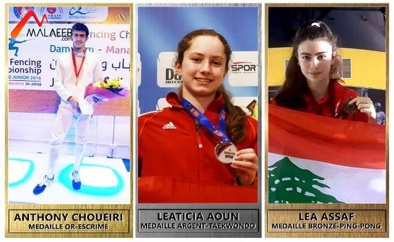 - ميدالية ذهبية آسيوية في لعبة سيف المبارزة أحرزها البطل انطوني شويري في بطولة أسيا للناشئين التي أقيمت في السعودية بعد تغلبه على لاعبين من دول عريقة في اللعبة.