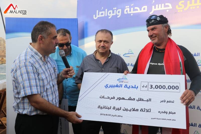 في إنجاز غير مسبوق على صعيد الرياضة اللبنانية، نجح ابن الغبيري السبّاح مشهور سلمان فرحات (51 عاماً) بقطع المسافة بين صيدا (الملعب البلدي) و"مارينا السمرلاند" سباحة، في حدث أقيم في ضوء التعاون بين بلديتي صيدا والغبيري وتحت عنوان "من صيدا إلى الغبيري جسر محبّة وتواصل".