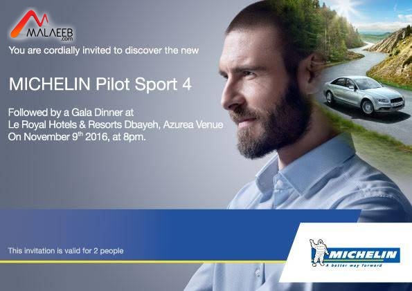 دعت "ميشلان" الشركة العالمية الرائدة في مجال تصنيع الاطارات، رجال الصحافة والاعلام الى حضور حفل اطلاق "بايلوت سبورت 4" وذلك عند الساعة الثامنة من مساء الأربعاء المقبل الواقع في 9 تشرين الثاني الجاري في فندق"لورويال" (ضبية).