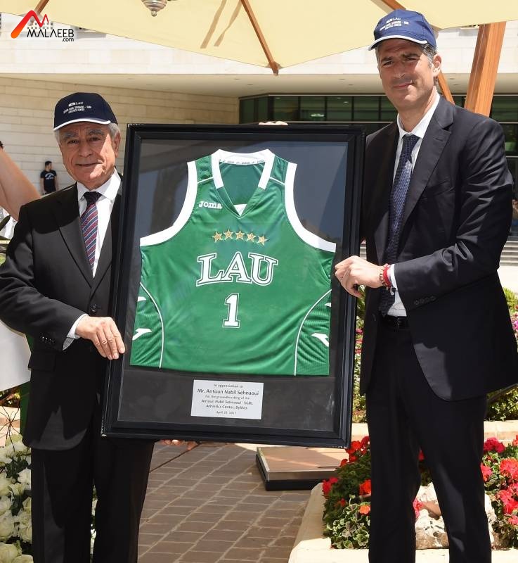 وبعد إلقائه كلمته، سلّم الدكتور جبرا السيد صحناوي القميص الرياضي للجامعة ذات اللون الأخضر الذي يرمز إلى الجامعة وحمل القميص الرقم ١ وخمس نجوم تعبيرًا عن إحراز الجامعة اللبنانية الأميركية في جبيل خمس بطولات جامعية.