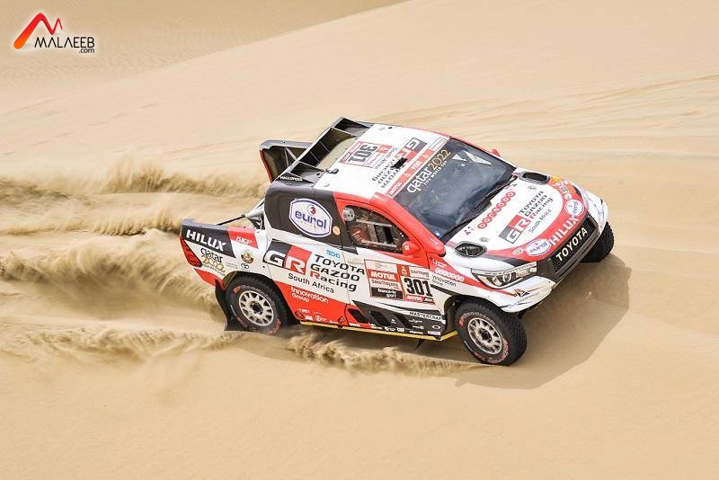 توالياً، وجاء خلفهم بطل العالم للراليات 9 مرات الفرنسي سيباستيان لويب، الذي يشارك بسيارة بيجو 3008 "دي كيه آر" من تجهيز فريق "بي أتش سبورت" بالمركز 13.