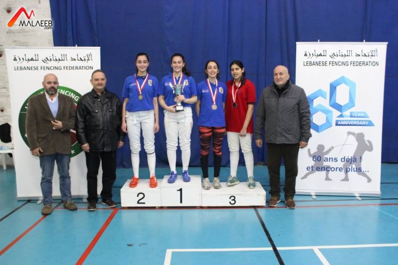 في فئة سيف المبارزة للشابات (20 سنة وما دون)، فازت لاعبة نادي المون لا سال ماري جو ابو جودة على زميلتها في النادي ناي سلامة في المباراة النهاىية ١٥ / ١٢ واحرزت اللقب. وجاء الترتيب كالآتي: