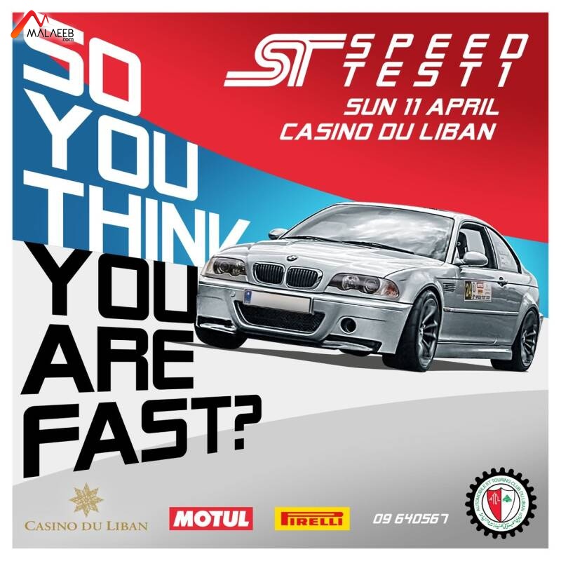 ينظّم النادي اللبناني للسيارات والسياحة ATCL السباق الأول للسرعة "سبيد تيست" الأحد 11 نيسان الجاري في كازينو لبنان برعاية "موتول"، وهو الجولة الأولى من بطولة لبنان لسباقات السرعة للعام الجاري.