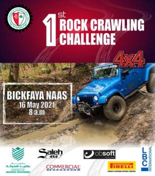ينظّم النادي اللبناني للسيارات والسياحة ATCL  التحدّي الأول لتسلّق الصخور "Rock Crawling Challenge" للعام 2021 لمركبات الدفع الرباعي 4x4 الأحد المقبل 16 أيار الجاري في بكفيا (النعص).