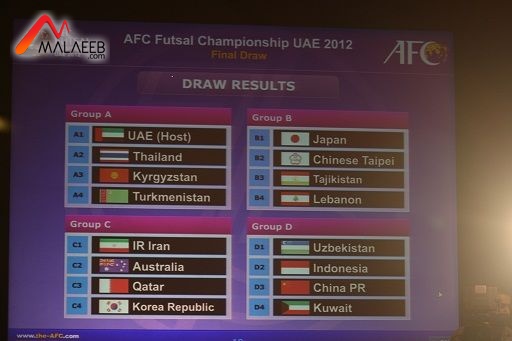 www.mwlweeb.com - وضعت قرعة كأس آسيا 2012 لكرة القدم للصالات "الفوتسال" التي سحبت في دبي، منتخب لبنان في المجموعة الثانية الى جانب منتخبات اليابان وتايبه وطاجيكستان.