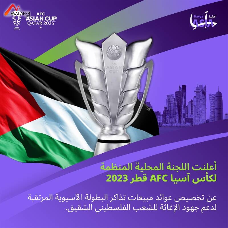 أعلنت اللجنة المنظمة المحلية لبطولة كأس آسياAFC قطر 2023 عن تخصيص عوائد مبيعات تذاكر البطولة الآسيوية المرتقبة لدعم جهود الإغاثة للشعب الفلسطيني الشقيق، الذي يمر في أزمة حرجة تستوجب من الجميع المساندة وتقديم مختلف أنواع الدعم اللازمة.