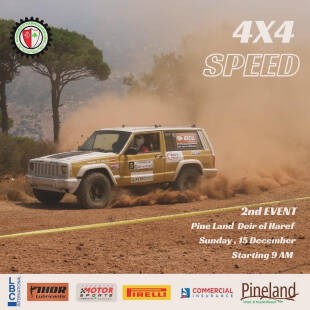 ينظم النادي اللبناني للسيارات والسياحة ATCLالجولة الثانية من بطولة لبنان للعام 2024 لسباقات السرعة لمركبات الدفع الرباعي الأحد 15 كانون الأول الجاري ابتداء من الساعة 9.00 صباحاً في مجمّع "باين لاند-" Pineland  في وادي دير الحرف.