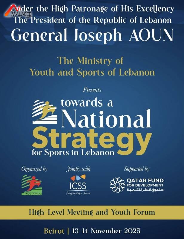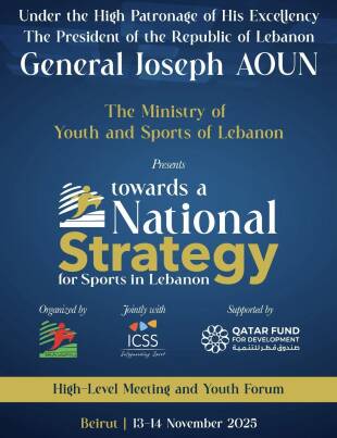 تنظم وزارة الشباب والرياضة، برعاية رئيس الجمهورية جوزاف عون، بالتعاون مع المركز الدولي للأمن الرياضي  (ICSS)، وبرنامج الرياضة من أجل التنمية والسلام التابع لصندوق قطر للتنمية(QFFD) مؤتمرًا وطنيًا تحت عنوان "نحو استراتيجية وطنية للرياضة في لبنان"، وذلك الخميس 13 الجاري في فندق "فينيسيا".