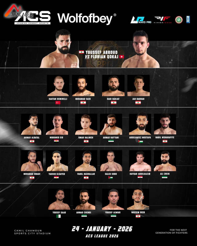 ستكون العاصمة اللبنانية بيروت عاصمة الرياضة القتالية في الشرق الأوسط اذ ستقام السبت  24 كانون الثاني الجاري المرحلة الأولى من "دوري وولف أوف باي - آي سي أس في الكيك بوكسينغ"Wolfofbey-ACS) Kickboxing League 2026 (الدوري العربي الذي يقام للمرة الأولى انطلاقاً من لبنان) للعام 2026، في قاعة بيار الجميل لمدينة كميل شمعون الرياضية، تحت اشراف الاتحاد اللبناني للعبة، ومن تنظيم منظمة "آي سي أس(ACS) التي يرأسها وأسسها رجل الأعمال وليد عجاج.