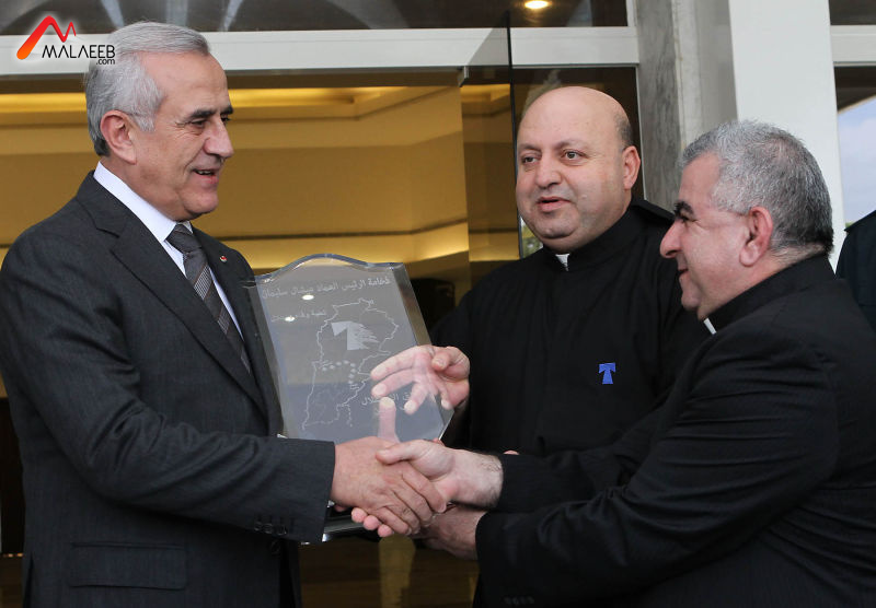 وألقى الأب صدقه كلمة شكر فيها رئيس الجمهورية لرعايته السباق سنة جديدة متحدثاً عن معاني الاستقلال مشيراً الى ان العلم اللبناني يمثّل كرامة المواطن وشرفه وهويته .واضاف"منذ تسلمتم قيادة الوطن حرصتم على تفكيك الألغام  بمهارة القائد الحكيم والشجاعة والوطنية وكنتم رائد الوسطية والاعتدال".وختم الاب صدقة قائلاً "ان مواقفكم اعادت الهيبة الى مركز الرئاسة الاولى والأمل الى قلوب المواطنين". ثم قدّم  الأب صدقه والأب شهوان درعاً تذكارياً الى الرئيس سليمان وسط تصفيق الحاضرين.
