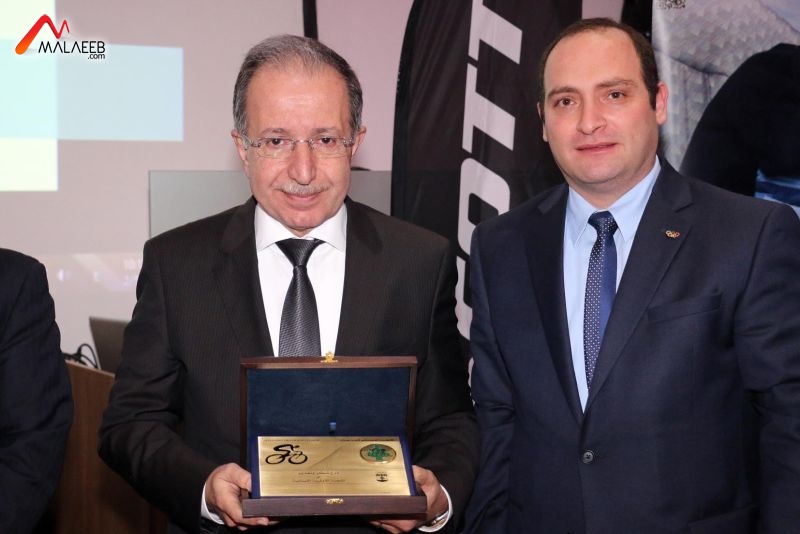 ثم تسلم اللاعب صلاح رباح درعاً تكريمياً لتصدره الترتيب العام للاعبي الدراجات لسنة 2013 فيما نال الياس ابو رشيد درع سنة 2014