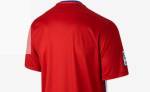 كما أن القميص ليس لديه ياقة حيث يحظى فقط بخط أزرق رفيع من الخلف فضلا عن تصميم الأكمام كاملة باللون الأحمر والحفاظ على لون السروال المعتاد باللون الأزرق.