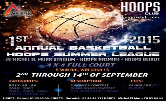 ينظم نادي هوبس الرياضي من 2 الى 13 ايلول المقبل الدوري الصيفي للفئات العمرية للذكور لمواليد 1998 – 1999، 2000 – 2001، 2002 – 2003، 2004 – 2005، والاناث مواليد 1998 – 1999 – 2000 و2001 – 2002 و2003، حيث ستقام حوالي 120 مباراة على ملاعب النادي في الحازمية وطريق المطار ومجمع ميشال المر الرياضي في البوشرية.