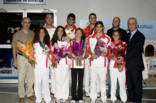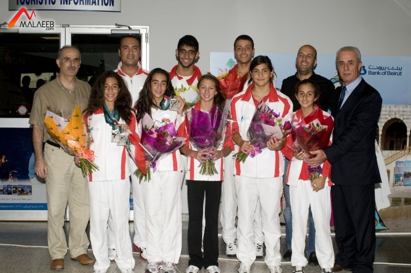 والحكم الاسيوي ساندرا بصبوص والسباحات لفئة14 سنة ومادون سارة الخطيب وكريستال الدويھي وناديا نبھان وجنيفر رزق لله وغبريالا الدويهي والسباحين لفئة17 سنة ومادون شارلي سلامة ومارون واكد، وكان في استقبالها افي مطار بيروت اعضاء الاتحاد واھالي السباحين.
