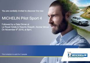 دعت "ميشلان" الشركة العالمية الرائدة في مجال تصنيع الاطارات، رجال الصحافة والاعلام الى حضور حفل اطلاق "بايلوت سبورت 4" وذلك عند الساعة الثامنة من مساء الأربعاء المقبل الواقع في 9 تشرين الثاني الجاري في فندق"لورويال" (ضبية).