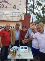 في الختام قطع اداريو ولاعبو الفريقين قالب الحلوى الذي حمل شعار الناديَين.