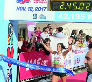 أمّا مواطنها حسين عواضة فحافظ على مركز الصدارة وسجل 2.34.14 س متراجعا عن توقيت العام الماضي حيث كان سجل 2.30.46س.