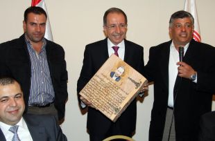 وسلّم شدراوي الى رئيس الاتحاد هدية تذكارية مصنوعة من خشب الأرز عربون محبة وتقدير.