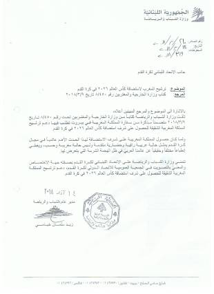وتحدث بيان صادر عن دائرة العلاقات العامة والاعلام في وزارة الشباب والرياضة، عن "توجيه واضح من الوزارة للاتحاد اللبناني لكرة القدم في شأن التصويت، وقد شكل التصويت اللبناني للملف الثلاثي (الاميركي الكندي والمكسيكي) مفاجأة كبيرة للوزارة، لأن الطرف المنافس كان بكل بساطة عربيا، ولأن الوزارة ارسلت توجيها في هذا الشأن".