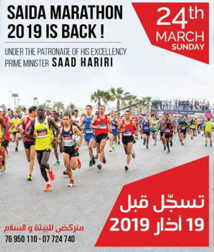 تعقد "جمعية صيدا إنترناشيونال ماراتون" مؤتمرا صحافياً للإعلان عن اطلاق العد العكسي لـ"ماراتون صيدا الدولي 2019 - منركض للبيئة والسلام" والمقرر في 24 آذار الجاري في صيدا برعاية رئيس مجلس الوزراء سعد الحريري، وذلك عند الساعة 13.00 من ظهر الأربعاء 13 آذار 2019 في قاعة بلدية صيدا.