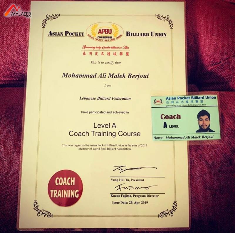 نال قائد منتخب لبنان للبلياردو الأميركي محمد برجاوي شهادة تدريب للمحترفين (أعلى درجة) من الاتحاد الآسيوي للعبة، ليصبح أول لاعب لبناني يحصل عليها.