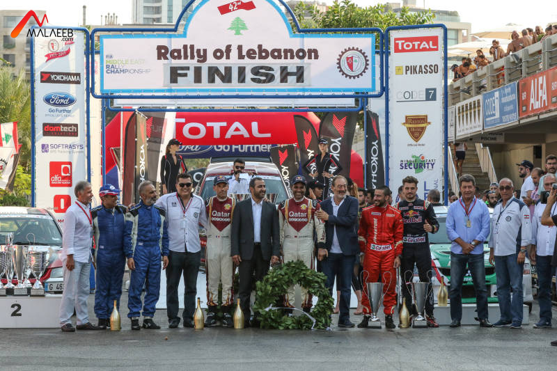 ابتسم رالي لبنان الدولي ال42 للسائق القطري ناصر صالح العطية وملاحه الفرنسي ماثيو بوميل على فولسفاكن  بولو جي تي اي بعد سنوات طويلة من التعثّر  والحظ السيء اذ لم يسبق للعطية ان احرز لقب وطن الارز في مشاركاته الكثيرة وعلى مدى سنوات في "جوهرة " راليات الشرق الأوسط .وجاء احراز القطري وملاحه الفرنسي للقب الرالي،الجولة الثالثة من بطولة الشرق الأوسط للراليات للعام الجاري، الذي نظمه النادي اللبناني للسيارات والسياحة برعاية رئيس الجمهورية العماد ميشال عون على مدى ثلاثة ايام  .وحلّ رودريك الراعي وملاحه جورج ناضر على ميتسوبيتشي لانسر ايفو 10 في المركز الثاني  بفارق 7 دقائق  9 ثوان   وباتريك نجيم وتييري روحانا على ميتسوبيتشي لانسر ايفو 9 في المركز الثالث بفارق 8 دقائق و36 ثانية عن الاول .