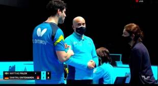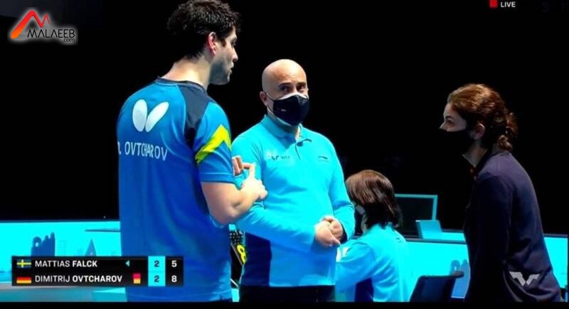 اللاعب الألماني ديمتري اوفتشاروف على الرغم من علمه بهذا البروتوكول وتحذير الحكم اللبناني الدولي حامل الشارة الزرقاء عماد مرعب له مرات عدة لخرقه القانون ثم تلقيه بطاقة صفراء اي "انذار" رسمي ظل يقوم بنفس الخروقات حتى قام بكل وضوح بمسح العرق من يده على طول الطاولة.