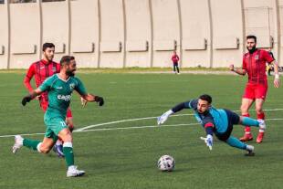 وبعد إضاعة "الأخضر" فرصًا بالجملة في الشوط الاول بواسطة بوكونتا سار وميشال فغالي ومهدي فحص، افتتح الضيوف التسجيل في الدقيقة 40 برأسية من عدنان ملحم بعد كرة بالعرض لعبها حسين محيدلي.