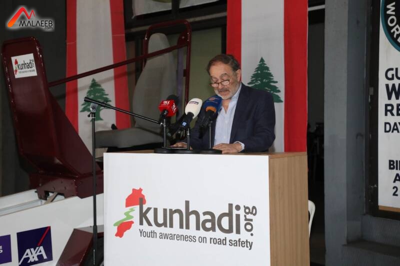 النشيد الوطني اللبناني فكلمة ترحيب من عريف الحفل الاعلامي نجيب قاعي متحدثاً عن ماهية الحفل. الكلمة الثانية للبطل السابق للراليات وسباقات السرعة نبيل كرم جاء فيها "أرحّب بكم في هذا المكان العزيز على قلبي الذي يحمل رسالة رياضية وسياحية وانسانية وسلامة القيادة على الطرقات. وبهذه المناسبة أدعمُ رسالة جمعية "كن هادي" الانسانية واتمنى لها التوفيق". الكلمة الثالثة لرئيس جمعية "كن هادي" فادي جبران الذي تحدث عن تاريخ الجمعية التي تأسست منذ 16 سنة وعن اهدافها. ثم تحدث عن السيارة التي سيجري عليها الاختبار واجرى تجربة ميدانية امام الحاضرين حول ضرورة وضع حزام الأمان وكيفية الخروج من السيارة في حال حصل اي حادث خلال القيادة. وناشد جبران اللبنانيين عدم استعمال الهاتف الخليوي خلال القيادة واجرى تجربة ميدانية حول هذا الموضوع ايضاً. واشار الى ان الجمعية تقوم منذ انشائها بحملة توعية في المدارس والجامعات على مساحة الوطن.