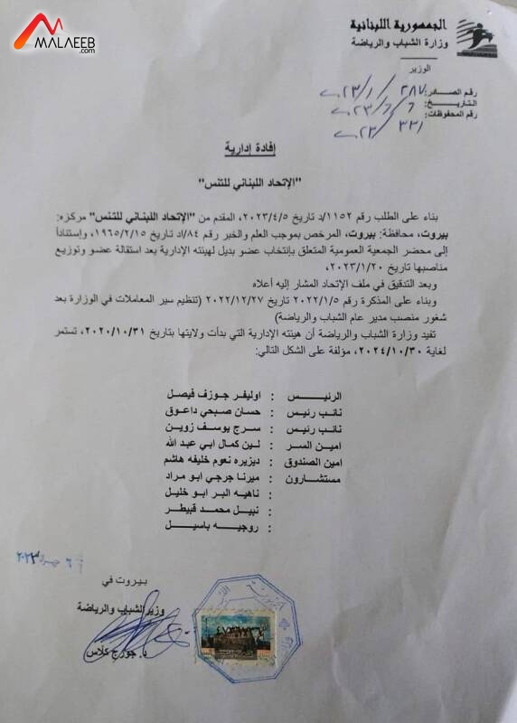 TENNIS, other news, ministre, LEBANESE FEDERATION, federation
