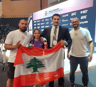 استهلّت البعثة اللبنانية مبارياتها في بطولة العالم للفنون القتالية المختلطة ( أم أم آي) التي تستضيفها العاصمة الاماراتية ابو ظبي تحت اشراف الاتحاد الدولي "آي أم أم آي اف" خير بداية باحراز اللاعبة البطلة لمار محمد بلطجي ميدالية ذهبية تاريخية للبنان في الفئة العمرية (12-13 سنة) في وزن 57 كلغ وهي الأولى لوطن الارز في تاريخ المشاركة الأنثوية في بطولات العالم.