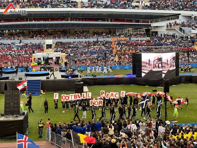 وسجّلت بعثة "BFA" حضوراً لافتاً في حفل الافتتاح الذي ضمّ 1911 فريقاً من 74 بلداً بحيث رفعت لافتة كبيرة عند دخولها كُتب عليها: "كرة القدم من اجل السلام".