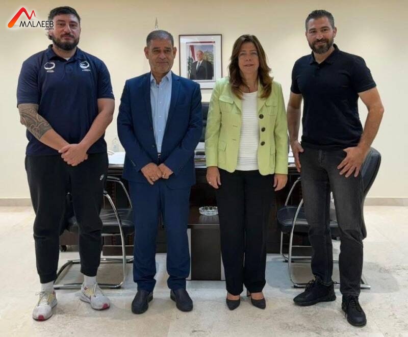 ؤزار رئيس الاتحاد اللبناني للركبي يونيون عضو اللجنة الاولمبية اللبنانية محمد عاصي يرافقه الأمين العام ايغل زريق والمدير الإداري سليمان المقداد وزيرة الشباب والرياضة الدكتورة نورا بايراقداريان.