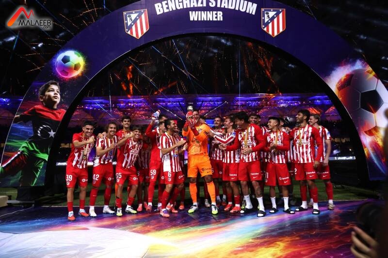 واختُتمت الليلة باحتفال مهيب، حيث تُوّج أتلتيكو مدريد بالكأس وسط عرض مبهر للألعاب النارية أضاء سماء بنغازي، في لحظة رمزية حملت رسالة واضحة للعالم بأن ليبيا قادرة على تنظيم كبرى الفعاليات الرياضية بحرفية وتميّز. وقد أشادت وسائل الإعلام الدولية بالتنظيم الراقي والحضور الجماهيري اللافت، مؤكدين أن بنغازي فتحت صفحة جديدة من تاريخها الرياضي والثقافي.