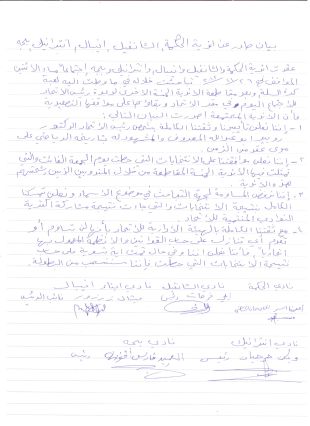 4-مع ثقتنا الكاملة بالهيئة الادارية للاتحاد بأنها لن تساوم أو تقدّم اي تنازل على حساب القوانين والانظمة المعمول بها اتحادياً، فاننا نعلن اننا وفي حال تمت اية تسوية على حساب نتيجة الانتخابات التي حصلت فاننا سننسحب من البطولة.