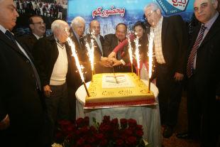 وفي ختام الحفل قطّع قالب الحلوى الذي أعدّ للمناسبة وسط تشابك أيدي الخطيب وابي رميا والأعور والحاج عمر غندور.