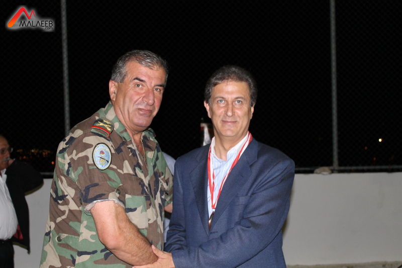وكان سبق المباراة كلمة ترحيبية من رئيس نادي العاقورة رشاد ياغي الذي قدّم دروعاً تذكارية الى قائد المركز العالي للرياضة العسكرية العميد الركن أسد الهاشم، والى نائب رئيس الإتحاد اللبناني للكرة الطائرة رئيس نادي السفارة الأميركية أسعد النخل، وإلى الحكم العالمي في الكرة الطائرة الطائرة الياس طايع.