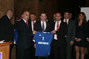 ثم سلّم النخل وزملاؤه في اللجنة الإدارية هيل البطاقة الرياضية رقم واحد بصفته رئيساً فخرياً للنادي، قبل أن يتسلّم من قائد فريق السفارة الياس مطر القميص الرياضي رقم واحد أيضاً. وبعد توزيع القمصان على لاعبي الفريق والتعريف بهم، وزّع هيل والنخل الدروع التذكارية على كلّ من الوزير كرامي وهمام والشيخ سركيس والنجم السابق لمنتخب لبنان في الكرة الطائرة "السهم الأسمر" منير عبوشي لاعب فريق السفارة حالياً. كما تسلّم السفير الأميركي درعاً من النخل وأعضاء النادي.
